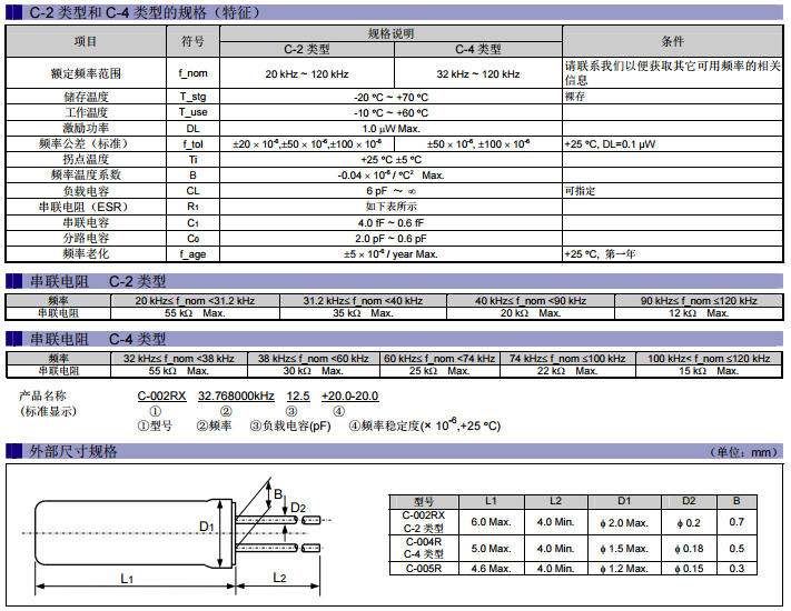 C-002RX規格,C-002RX無源晶振,C-002RX