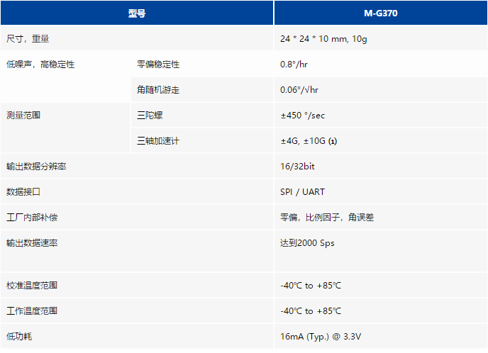 下面南山電子給大家介紹下MEMS陀螺儀  M-G370的具體參數供大家選型參考: